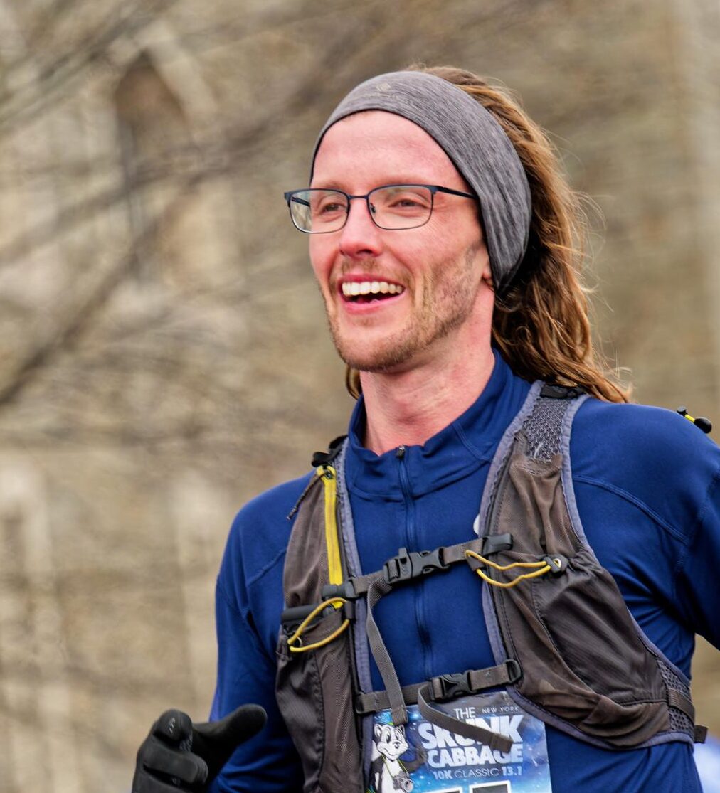 After a stint away from Ithaca, Jeney returned in 2022 for a job at Cornell as Director of MacCHESS, and to renew her acquaintance with her favorite trail runs. She’s run nearly all the trail races within a short drive of Ithaca at least once, and enjoys trail race vacations with her husband all over the country. Together, they also co-direct the Finger Lakes 50s.